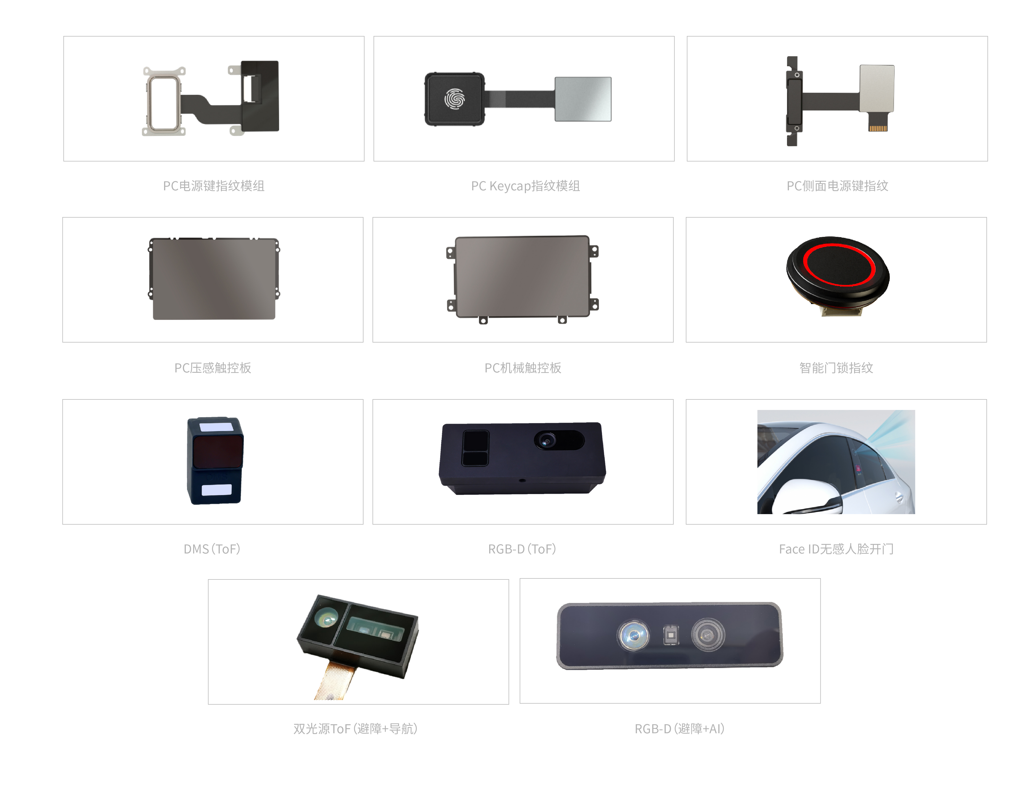 全面布局指紋以及觸控傳感器開發,業務范圍涵蓋電容指紋、超聲波指紋、機械式觸控板、壓感式觸控板,方案廣泛運用于電腦、電腦周邊、門鎖等領域。